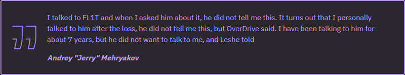 “我和FL1T聊过,当我问起这件事时,他并没有跟我说过这些。事实上,失利后我亲自找过他,但他没提过,反倒是OverDrive说了这些。我和他认识快7年了,他都不愿跟我讲,却会告诉OD?”