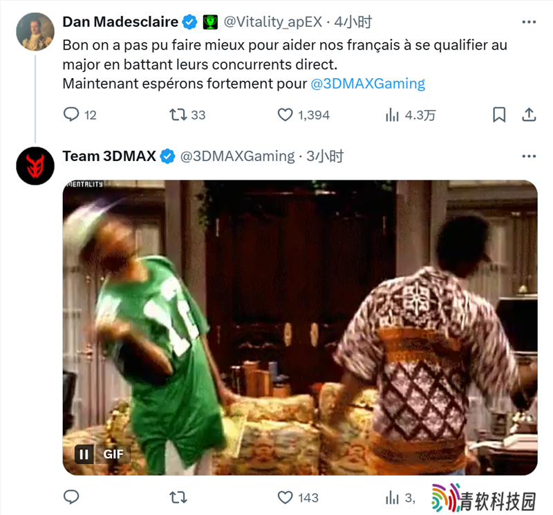 而Vitality战队指挥apEX也在社交平台上写道:“我们尽力了,击败了法国队的直接竞争对手,帮助法国队获得了参加Major的资格。