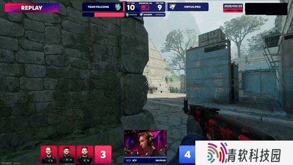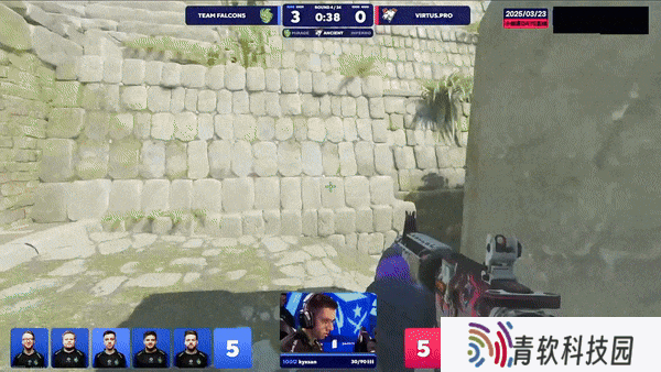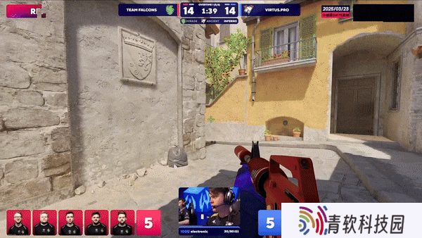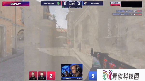 次回合Virtus.pro强起失败。来到上半场第一个长枪局,ICY大狙蕉道先拿首杀,随后B区的进攻土匪进点没搜,FL1T藏在死点打掉雷包,比分来到1-3。第六回合,只有一把大狙的CT赌区A点成功,Virtus.pro直接翻盘,比分来到2-4。随后双方在比分上你来我往。第九回合,FL4MUS中路前压配合蕉道队友闪光直接五杀ACE,比分来到4-5。第十一回合,CT B区想前压操作被NiKo双杀接住,ICY大狙补位空枪,最后FL4MUS一人选择保枪。上半场最终局,NiKo蕉道又拿双杀又拿信息,队友转A放下雷包轻松拿下胜利,半场Falcons以7-5比分暂时领先。