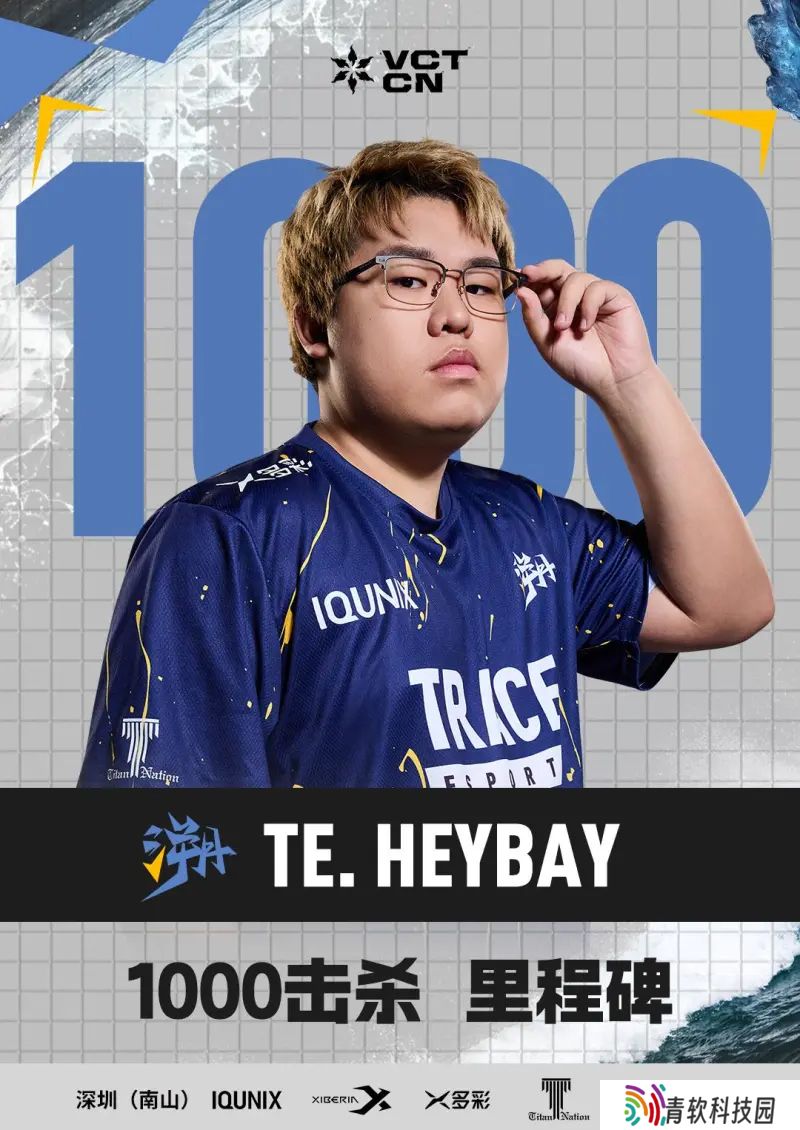 在2025 VCT CN第一赛段TE对阵WOL的比赛中,TE.heybay斩获1000杀成就!